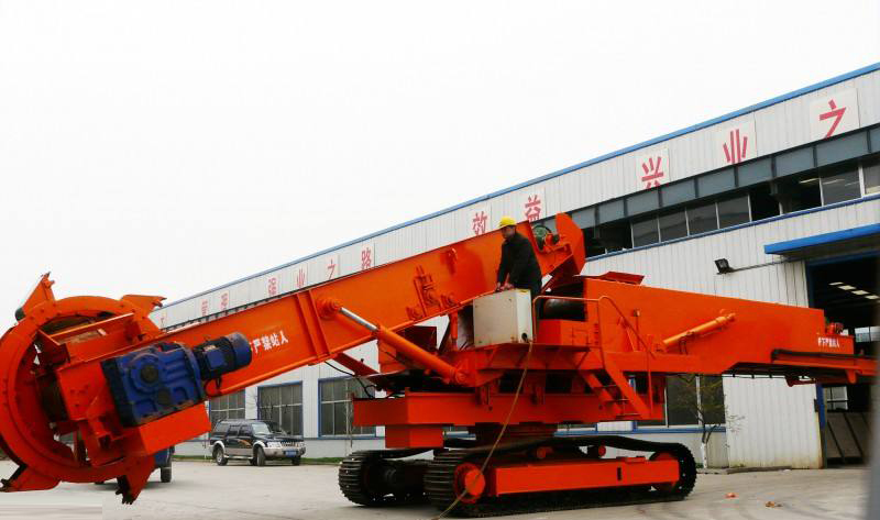 利用斗輪連續(xù)取料,用機(jī)上的帶式輸送機(jī)連續(xù)堆料的有軌式裝卸機(jī)械。它是散狀物料(散料)儲(chǔ)料場(chǎng)內(nèi)的專用機(jī)械,是在斗輪挖掘機(jī)的基礎(chǔ)上演變而來的,可與卸車(船)機(jī)、帶式輸送機(jī)、裝船(車)機(jī)組成儲(chǔ)料場(chǎng)運(yùn)輸機(jī)械化系統(tǒng),生產(chǎn)能力每小時(shí)可達(dá)1千立方。斗輪堆取料機(jī)的作業(yè)有很強(qiáng)的規(guī)律性,易實(shí)現(xiàn)自動(dòng)化??刂品绞接惺謩?dòng)、半自動(dòng)和自動(dòng)等。