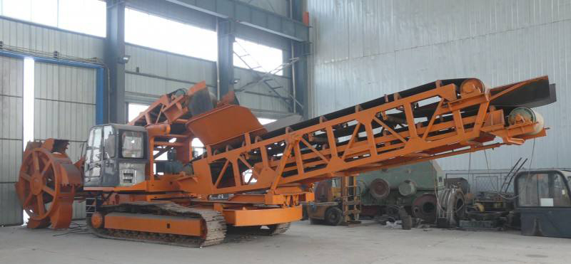 斗輪取料機,是指一種用于大型干散貨堆場的既能堆料又能取料的連續(xù)輸送的高效裝卸機械。由可俯仰和水平擺動的膠帶輸送臂及其前端的斗輪、機架、運行機構(gòu)組成,膠帶可雙向運行,取料時由斗輪取料經(jīng)輸送臂送出,堆料時則由主輸送機運來的貨物經(jīng)由輸送臂投向堆場。