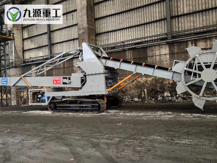 履帶式斗輪機是指一種用于大型干散貨堆場的既能堆料又能取料的連續(xù)輸送的高效裝卸機械。由可俯仰和水平擺動的膠帶輸送臂及其前端的斗輪、機架、運行機構組成,膠帶可雙向運行,取料時由斗輪取料經輸送臂送出,堆料時則由主輸送機運來的貨物經由輸送臂投向堆場。